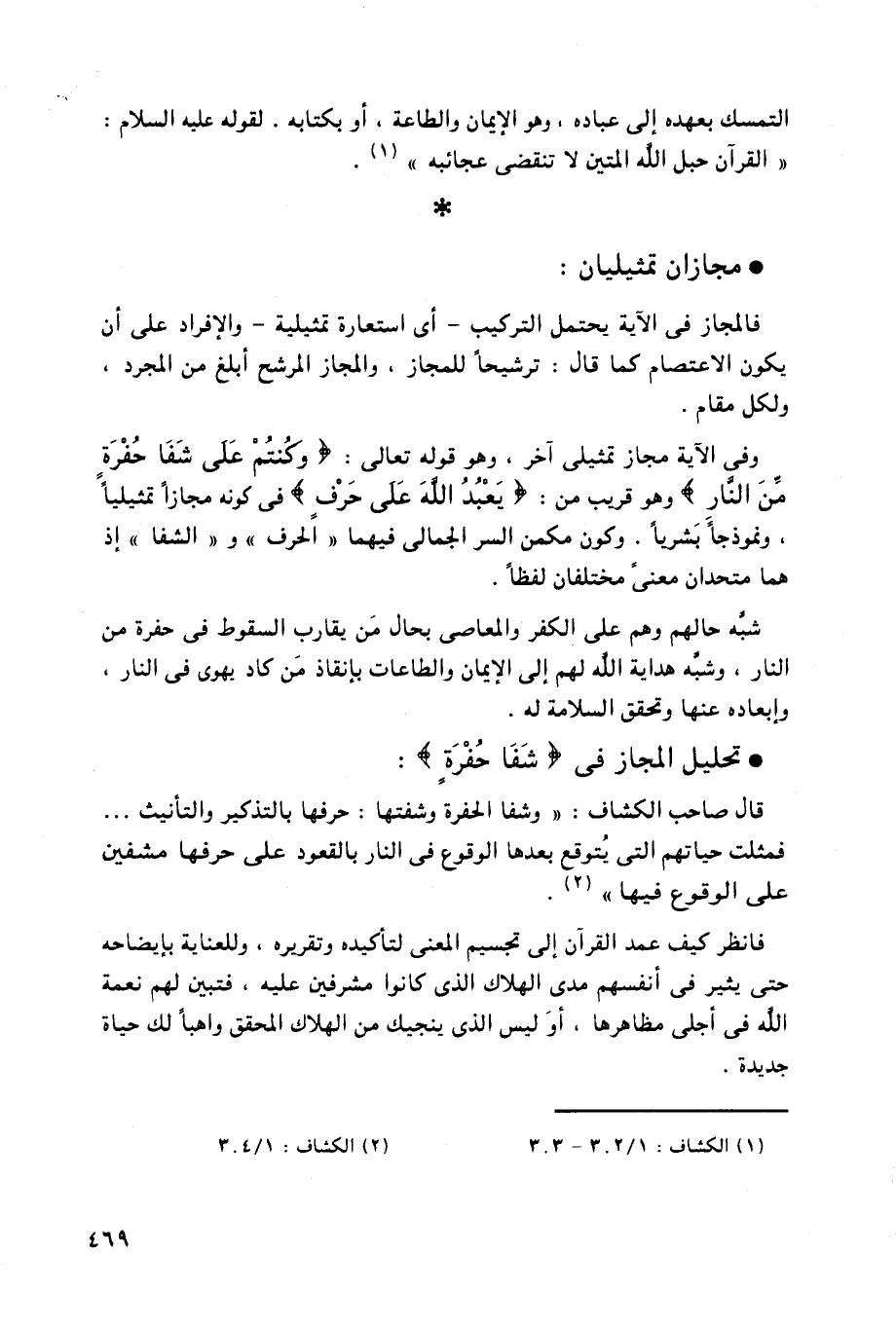 وفي الآية مجاز تمثيلى آخر، وهو قوله تعالى: (وَكُنْتُمْ عَلَى شَفَا حُفْرَةٍ مِنَ النَّارِ) وهو قريب من: (يَعْبُدُ اللَّهَ عَلَى حَرْفٍ) في كونه مجازاً تمثيلياً