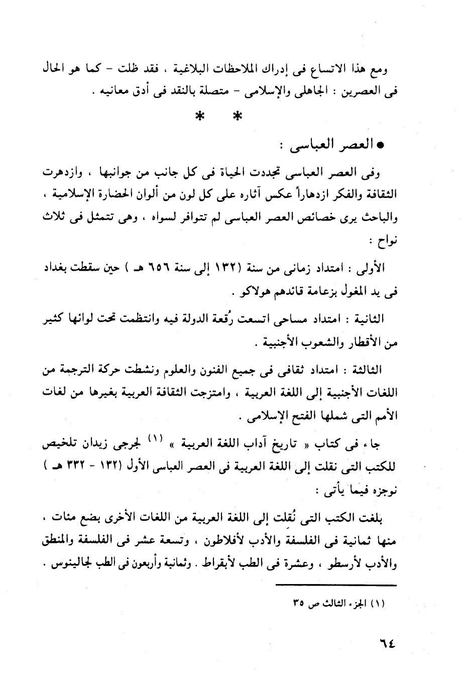 جاء في كتاب " تاريخ آداب اللغة العربية " لجرجى زيدان تلخيص