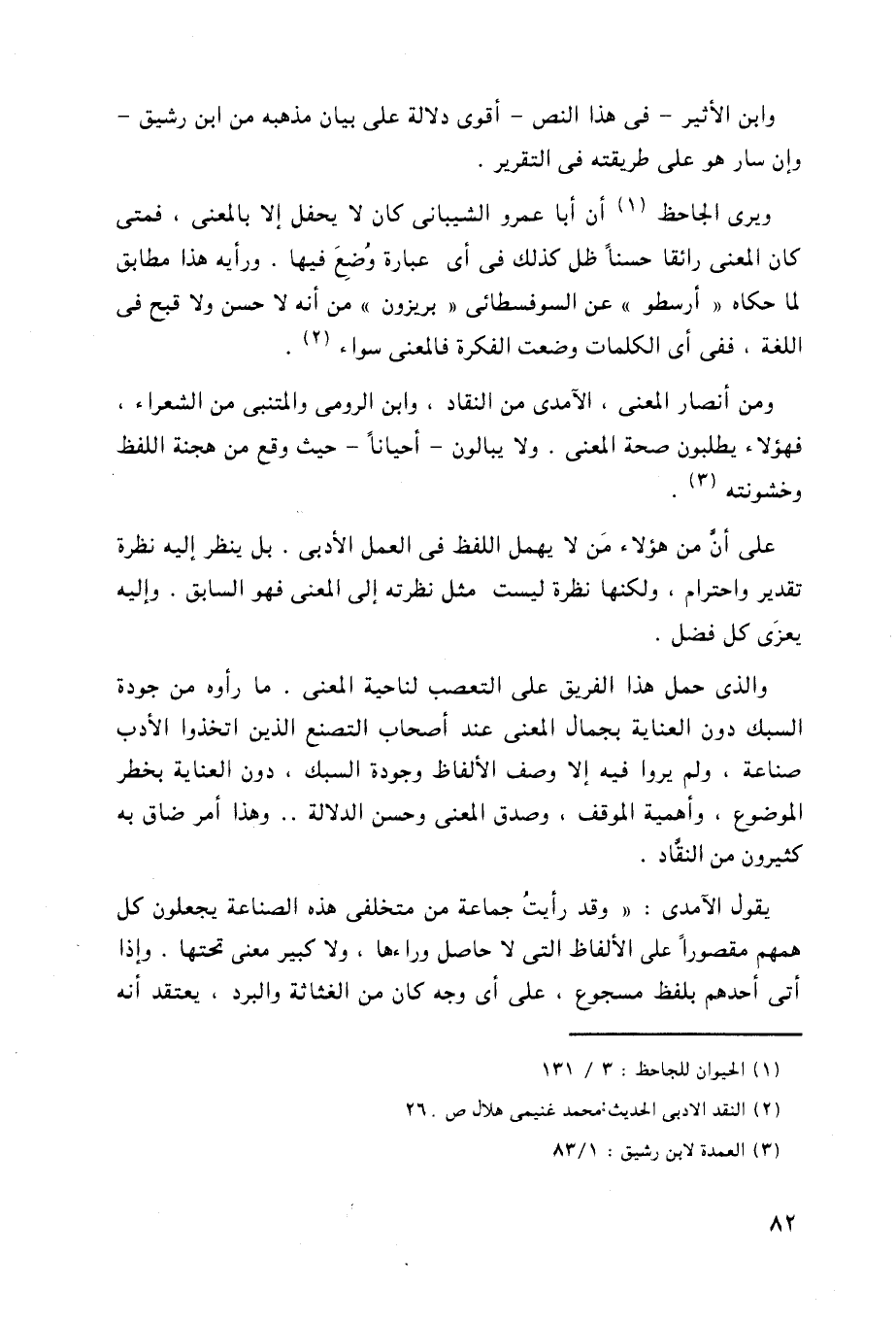 وابن الأثير - في هذا النص - أقوى دلالة على بيان مذهبه من ابن رشيق -