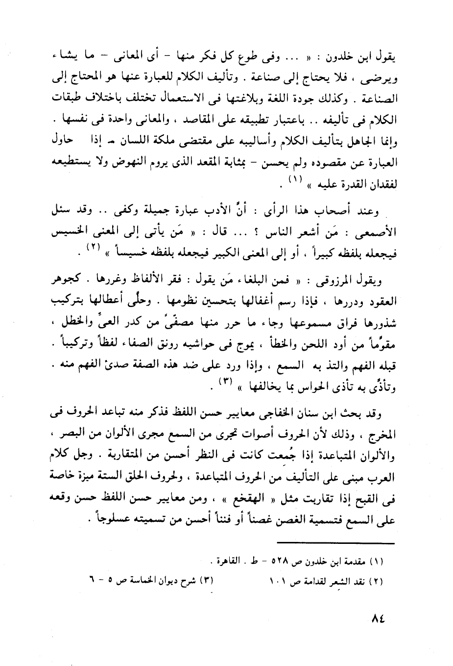 وقد بحث ابن سنان الخفاجى معايير حسن اللفظ فذكر منه تباعد الحروف فى