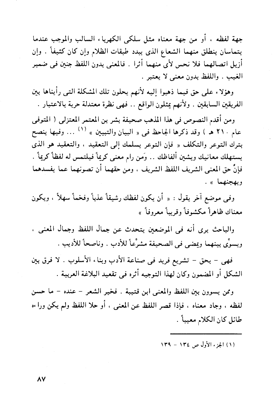 والباحث يرى أنه في الموضعين يتحدث عن جمال اللفظ وجمال المعنى،