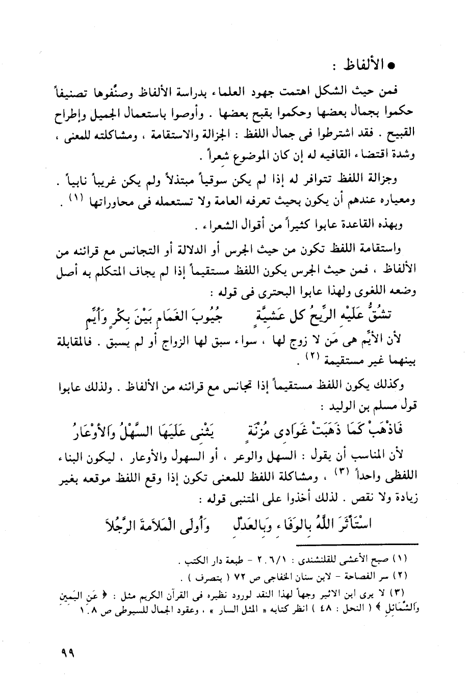 زيادة ولا نقص. لذلك أخذوا على المتنبي قوله: