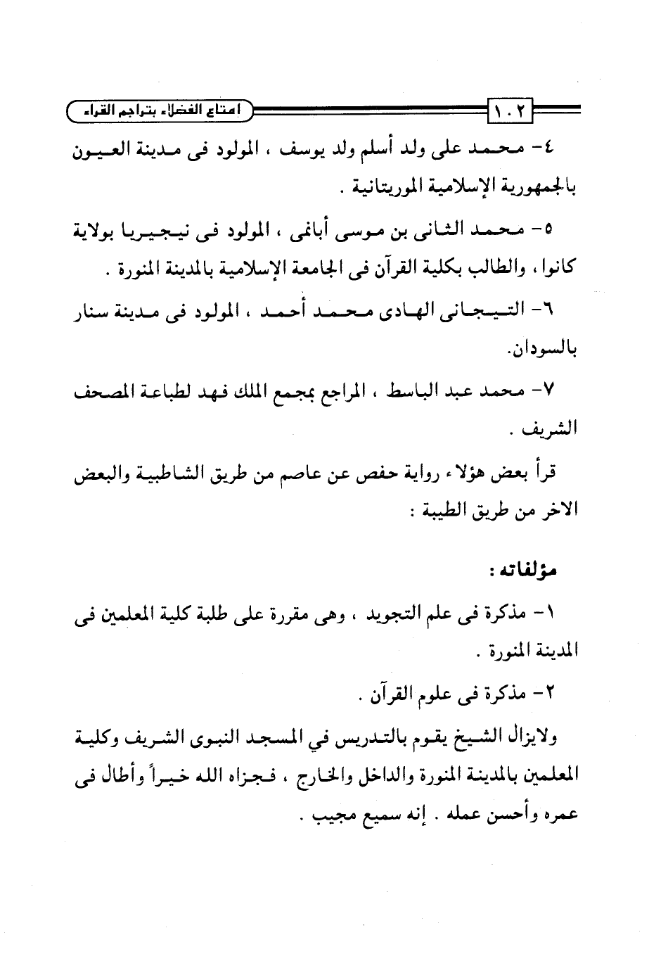 1 - مذكرة في علم التجويد، وهي مقررة على طلبة كلية المعلمين في المدينة المنورة.