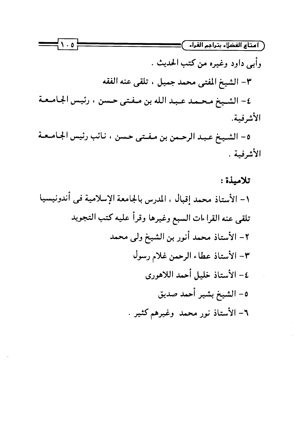 5 - الشيخ عبد الرحمن بن مفتى حسن، نائب رئيس الجامعة - صلى الله عليه وسلم - الأشرفية.
