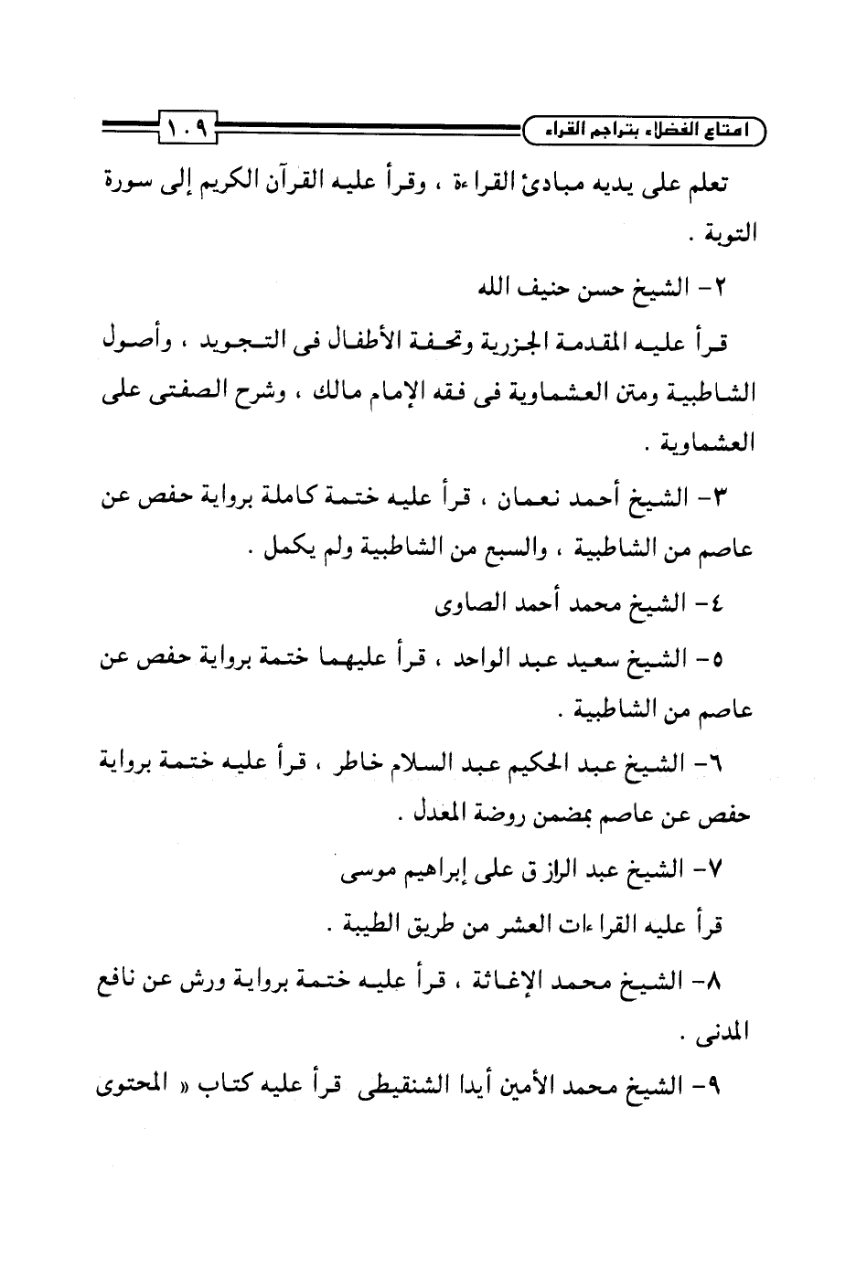 9 - الشيخ محمَّد الأمين أيدا الشنقيطى قرأ عليه كتاب "المحتوى