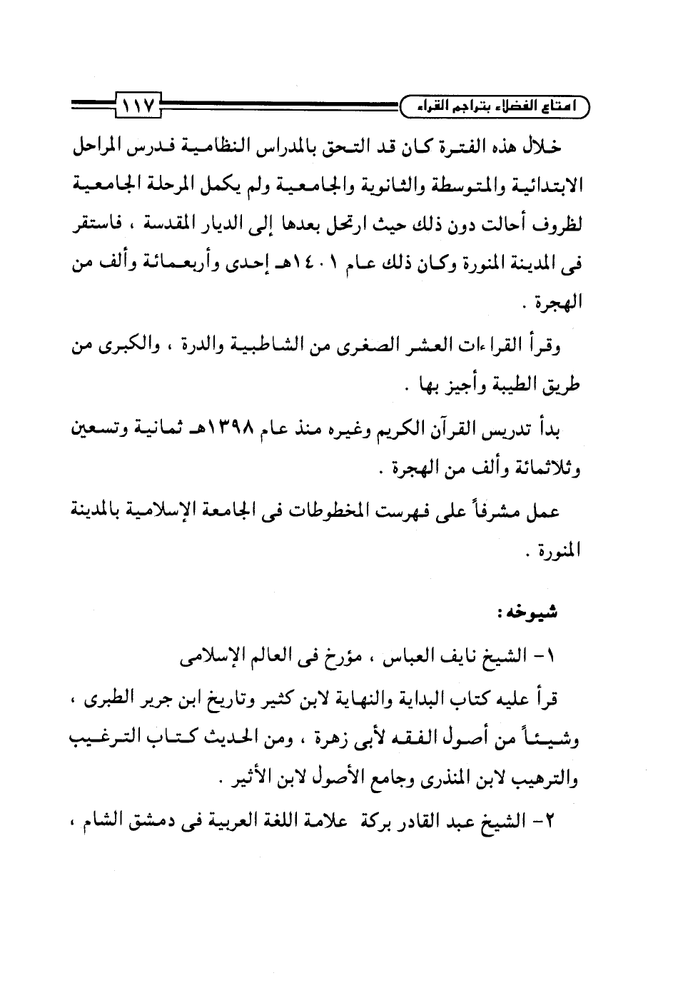 كتاب إمتاع الفضلاء بتراجم القراء فيما بعد القرن الثامن الهجري (اسم الجزء: 1)
