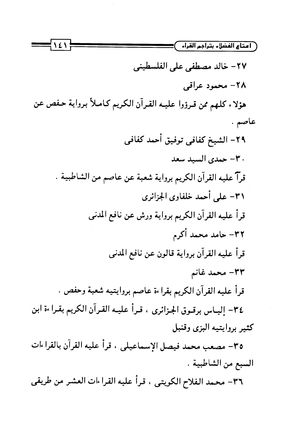34 - إلياس برقوق الجزائرى، قرأ عليه القرآن الكريم بقراءة ابن كثير بروايتيه البزى وقنبل