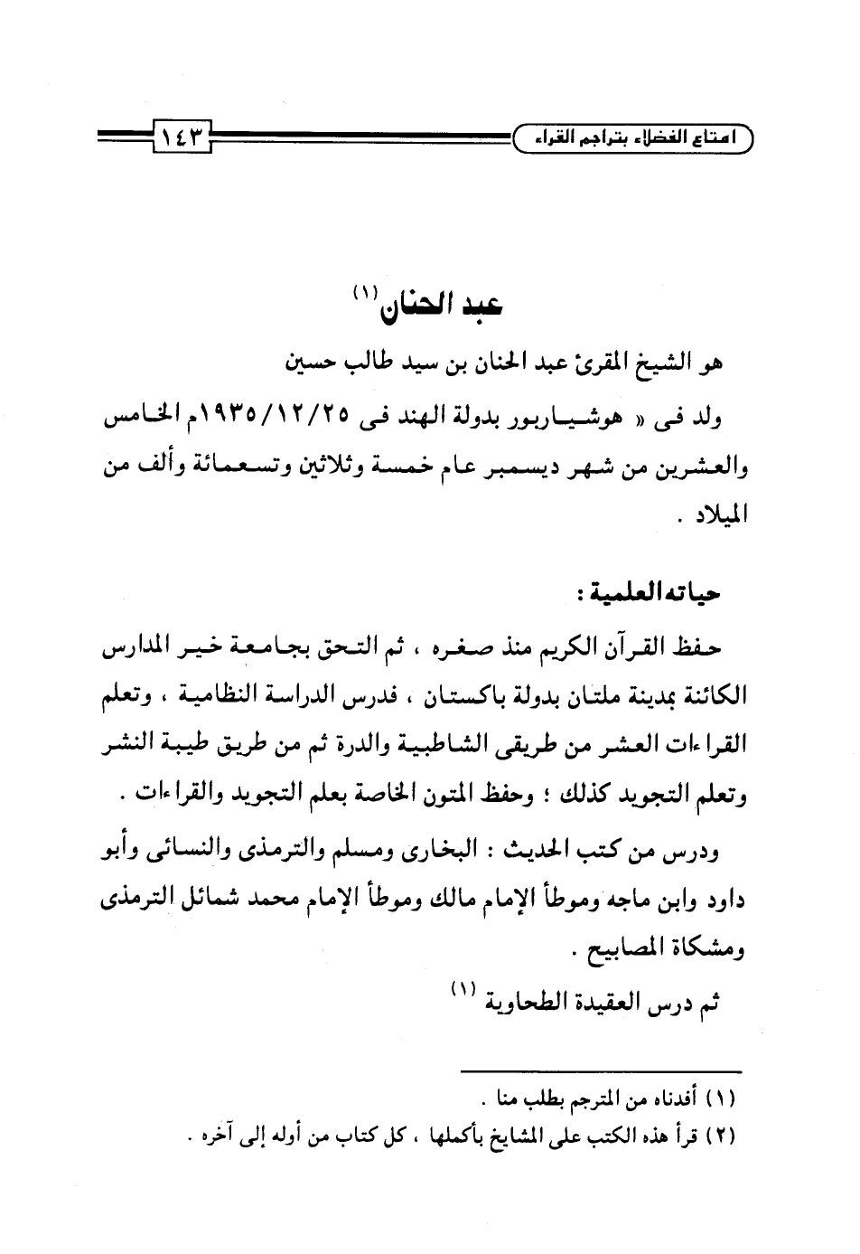 هو الشيخ المقرئ عبد الحنان بن سيد طالب حسين