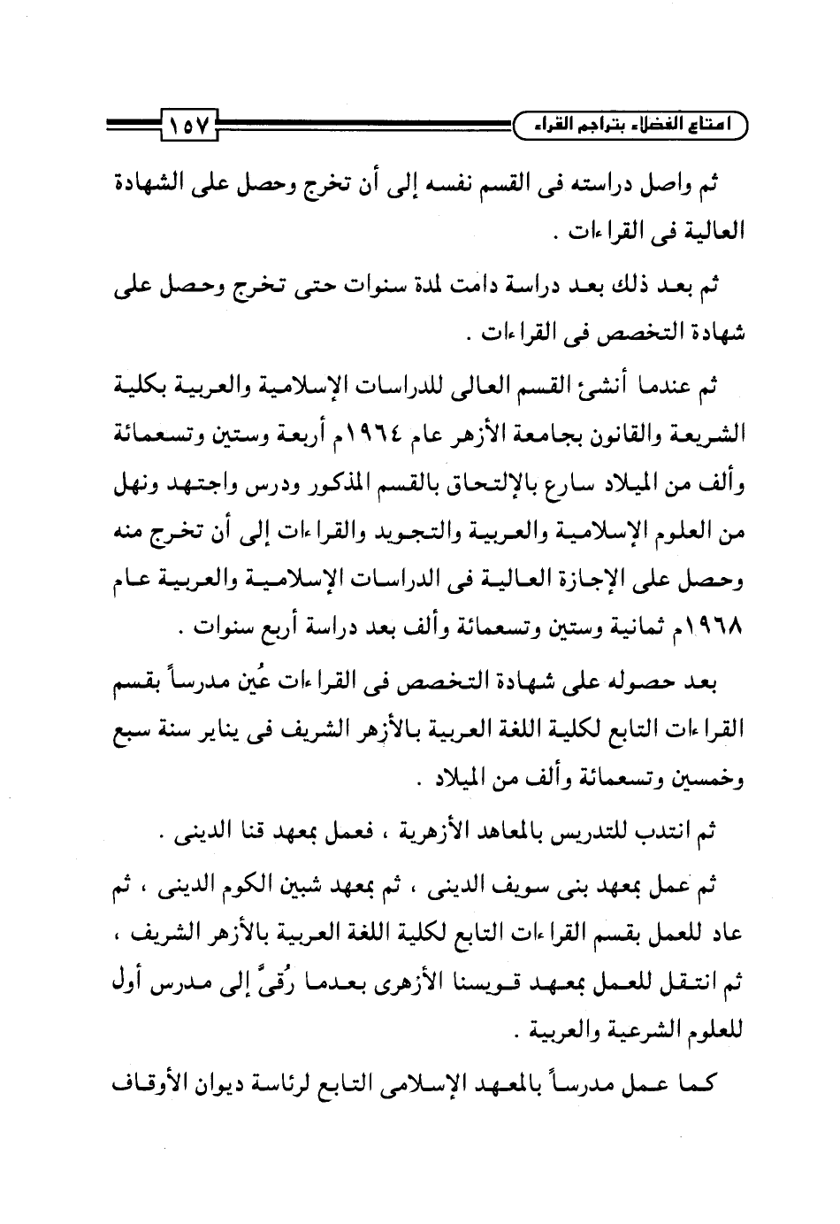 ثم بعد ذلك بعد دراسة دامت لمدة سنوات حتى تخرج وحصل على شهادة التخصص في القراءات.
