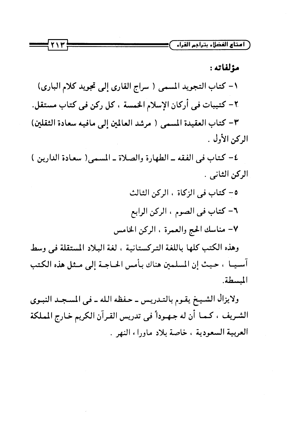 وهذه الكتب كلها باللغة التركستانية، لغة البلاد المستقلة في وسط آسيا، حيث إن المسلمين هناك بأمس الحاجة إلى مثل هذه الكتب المبسطة.