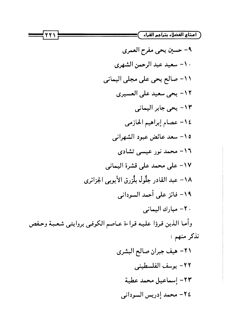 وأما الذين قرؤا عليه قراءة عاصم الكوفي بروايتي شعبة وحفص نذكر منهم: