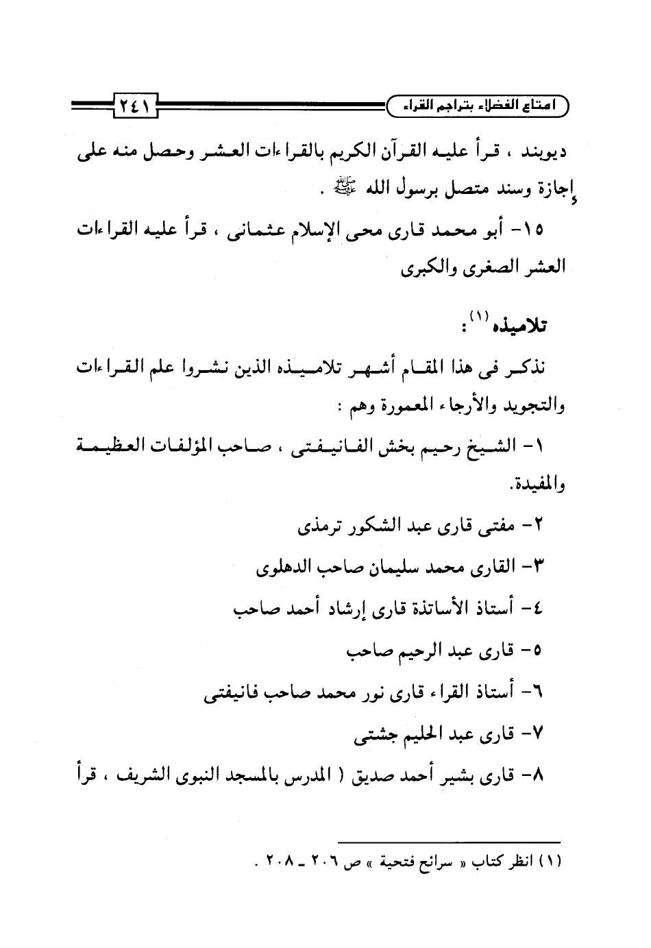 15 - أبو محمَّد قاري محيي الإِسلام عثمانى، قرأ عليه القراءات العشر الصغرى والكبرى
