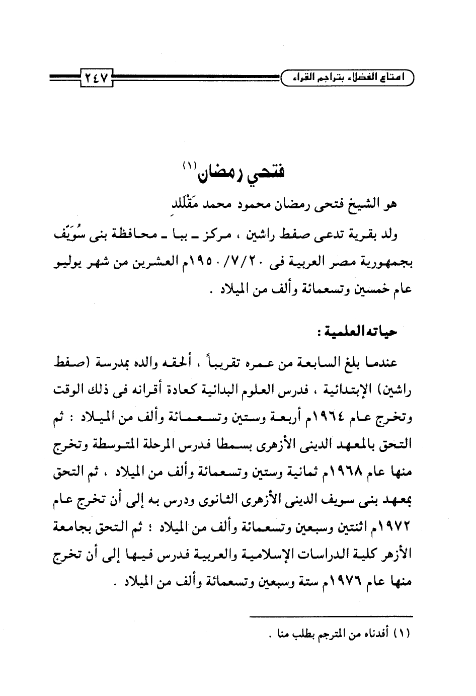 هو الشيخ فتحى رمضان محمود محمَّد مَقْلَلدِ