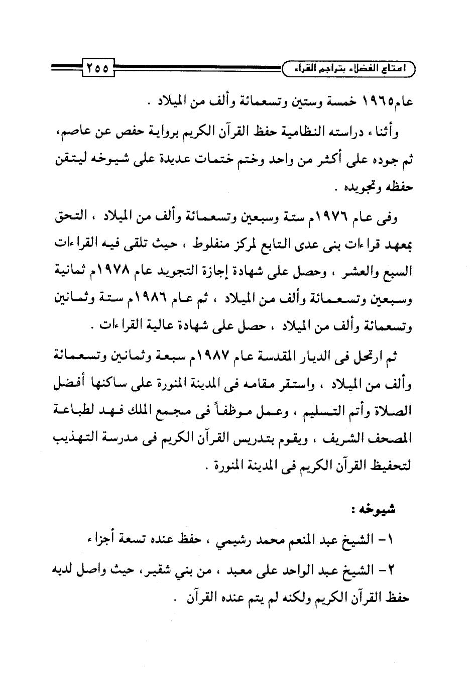 2 - الشيخ عبد الواحد على معبد، من بني شقير، حيث واصل لديه حفظ القرآن الكريم ولكنه لم يتم عنده القرآن.