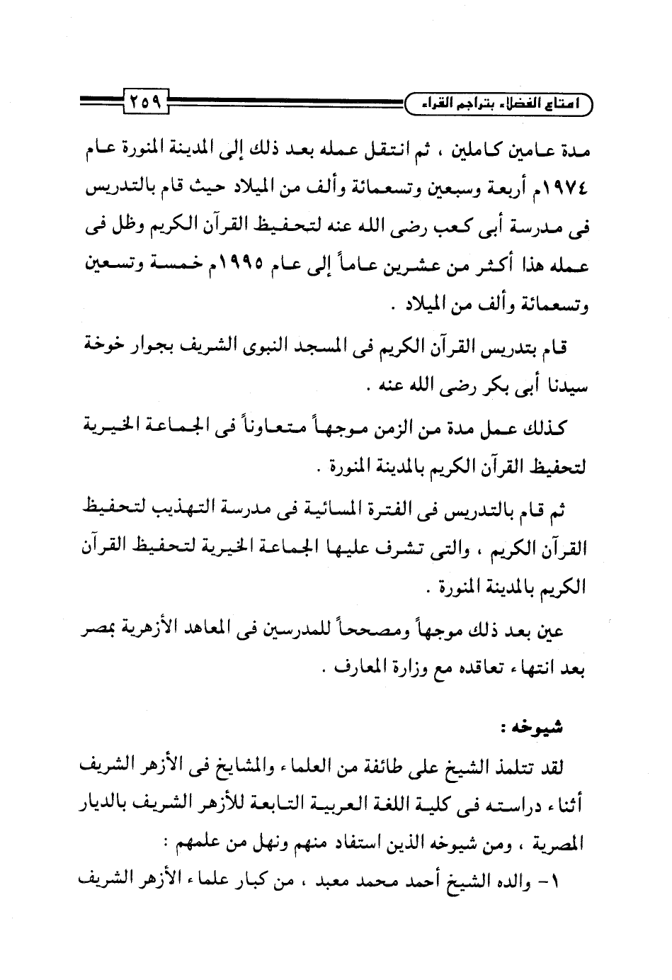 قام بتدريس القرآن الكريم في المسجد النبوى الشريف بجوار خوخة سيدنا أبي بكر رضي الله عنه.