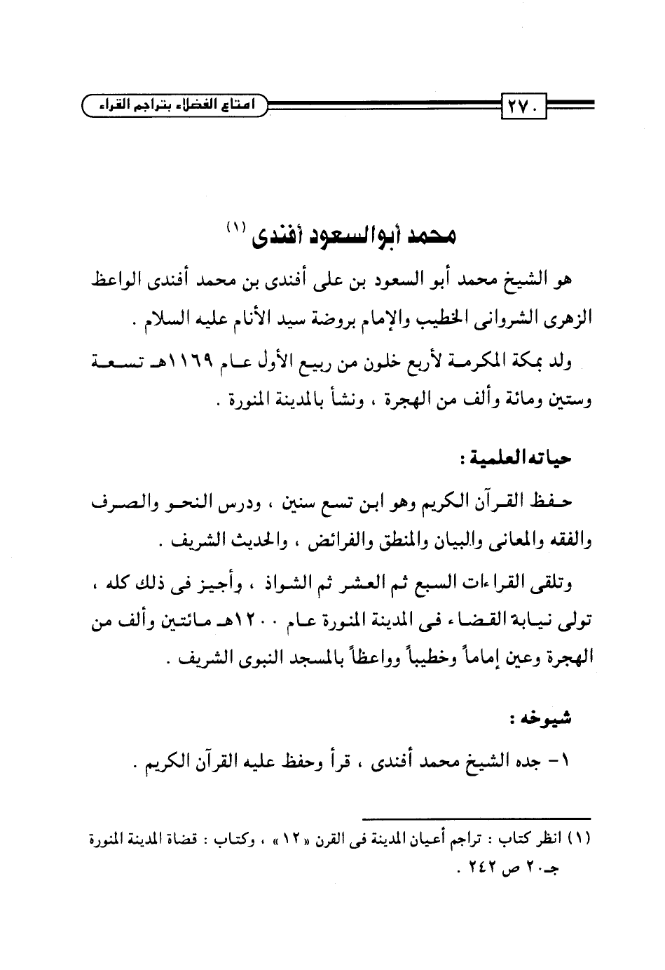 (¬1) انظر كتاب: تراجم أعيان المدينة في القرن "12"، وكتاب: قضاة المدينة المنورة جـ20 ص242.