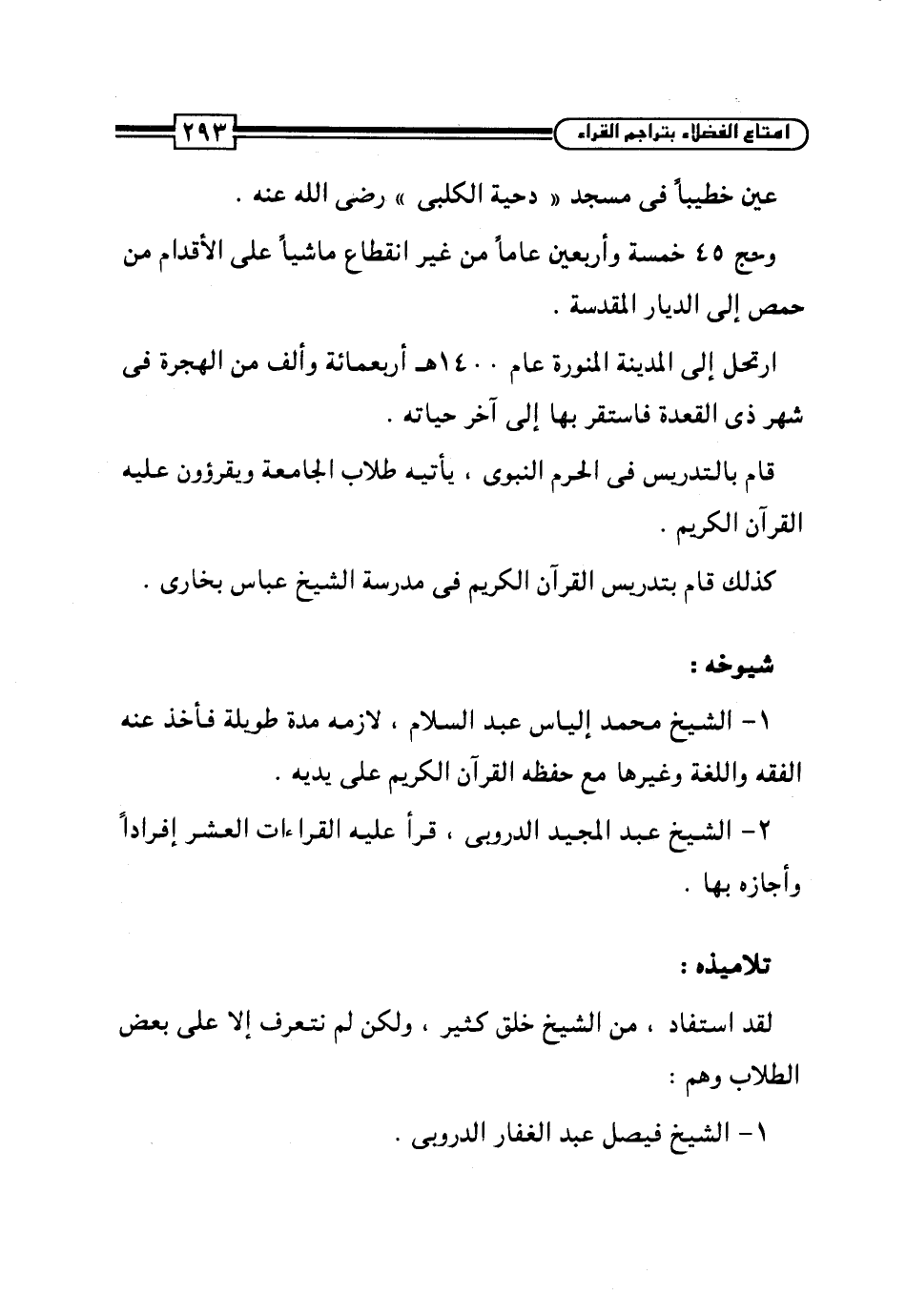 2 - الشيخ عبد المجيد الدروبي، قرأ عليه القراءات العشر إفراداً وأجازه بها.
