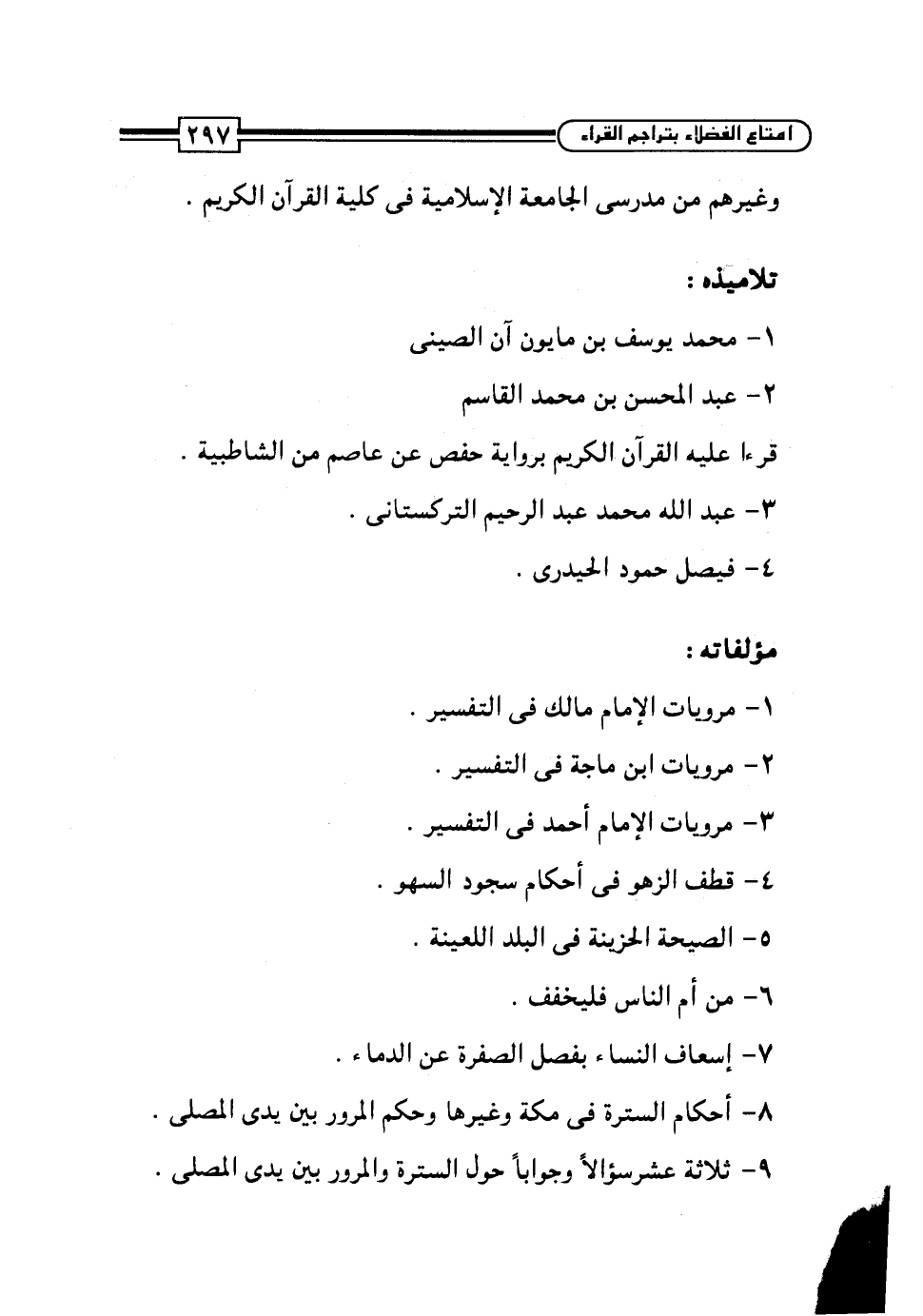 وغيرهم من مدرسى الجامعة الإِسلامية في كلية القرآن الكريم.