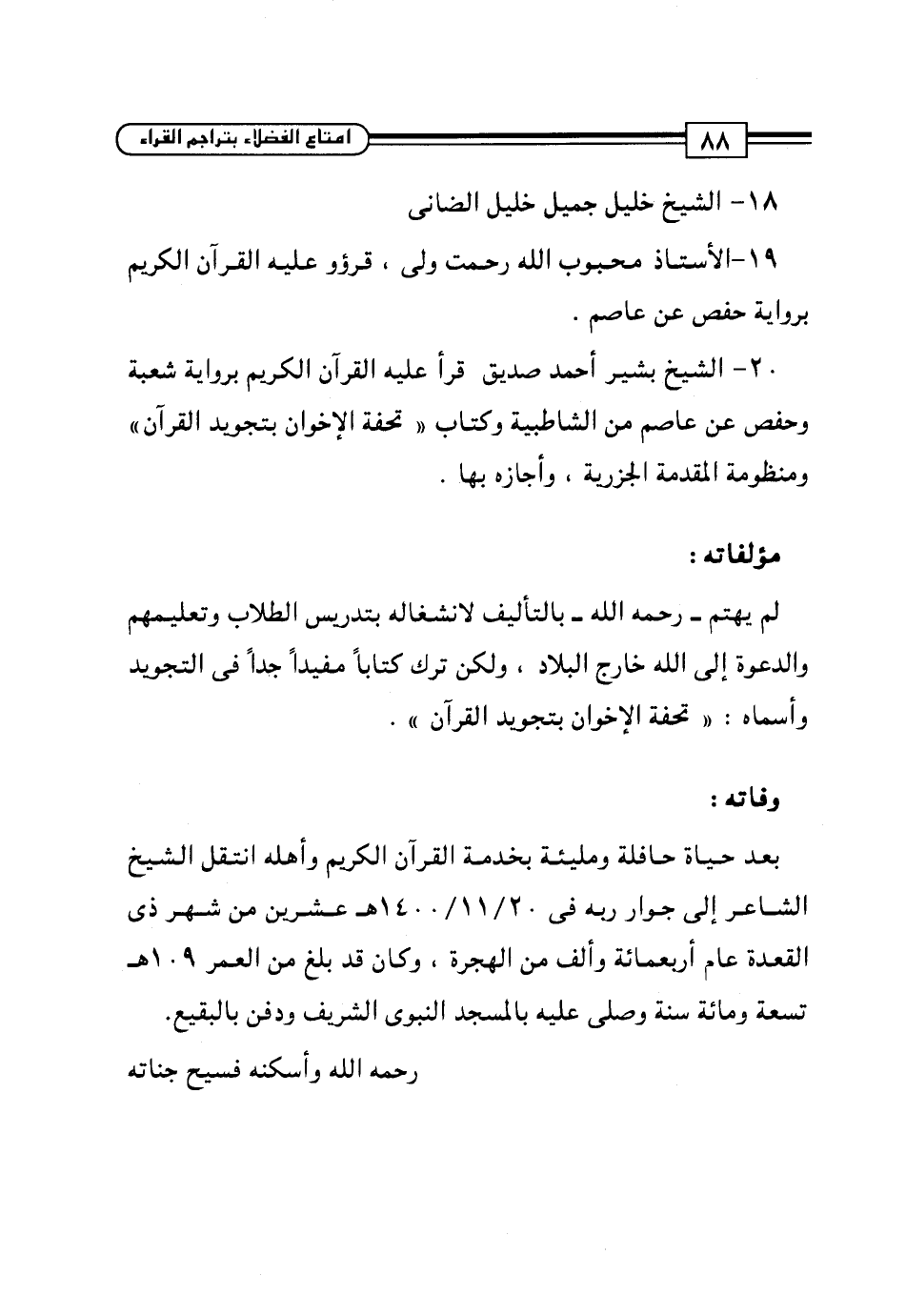 19 - الأستاذ محبوب الله رحمت ولى، قرؤو عليه القرآن الكريم برواية حفص عن عاصم.