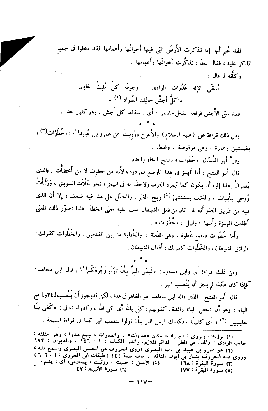 ومن ذلك قراءة علي عليه السلام والأغرج، ورُويت عن عمرو بن عبيد2: "خُطُؤات"3 بضمتين وهمزة، وهي مرفوضة وغلط.
