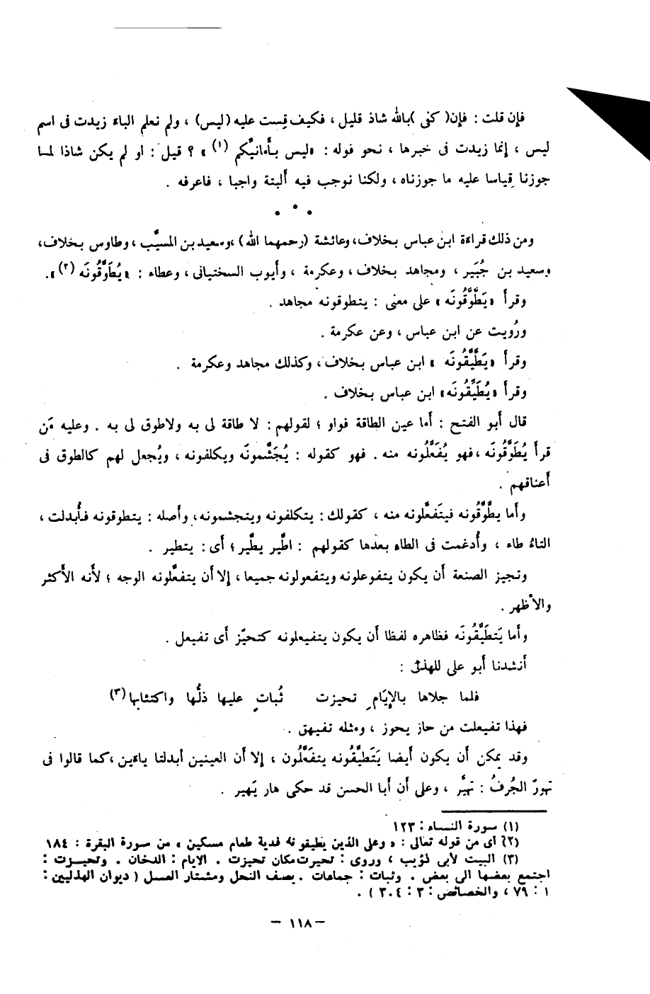 قال أبو الفتح: أما عين الطاقة فواو؛ لقوهم: لا طاقة لي به ولا طوق لي به؛ وعليه مَن قرأ "يُطَوَّقُونَه" فهو يُفَعَّلُونه منه، فهو كقوله: يُجَشَّمُونه، ويكلفونه، ويجعل لهم كالطوق في أعناقهم.