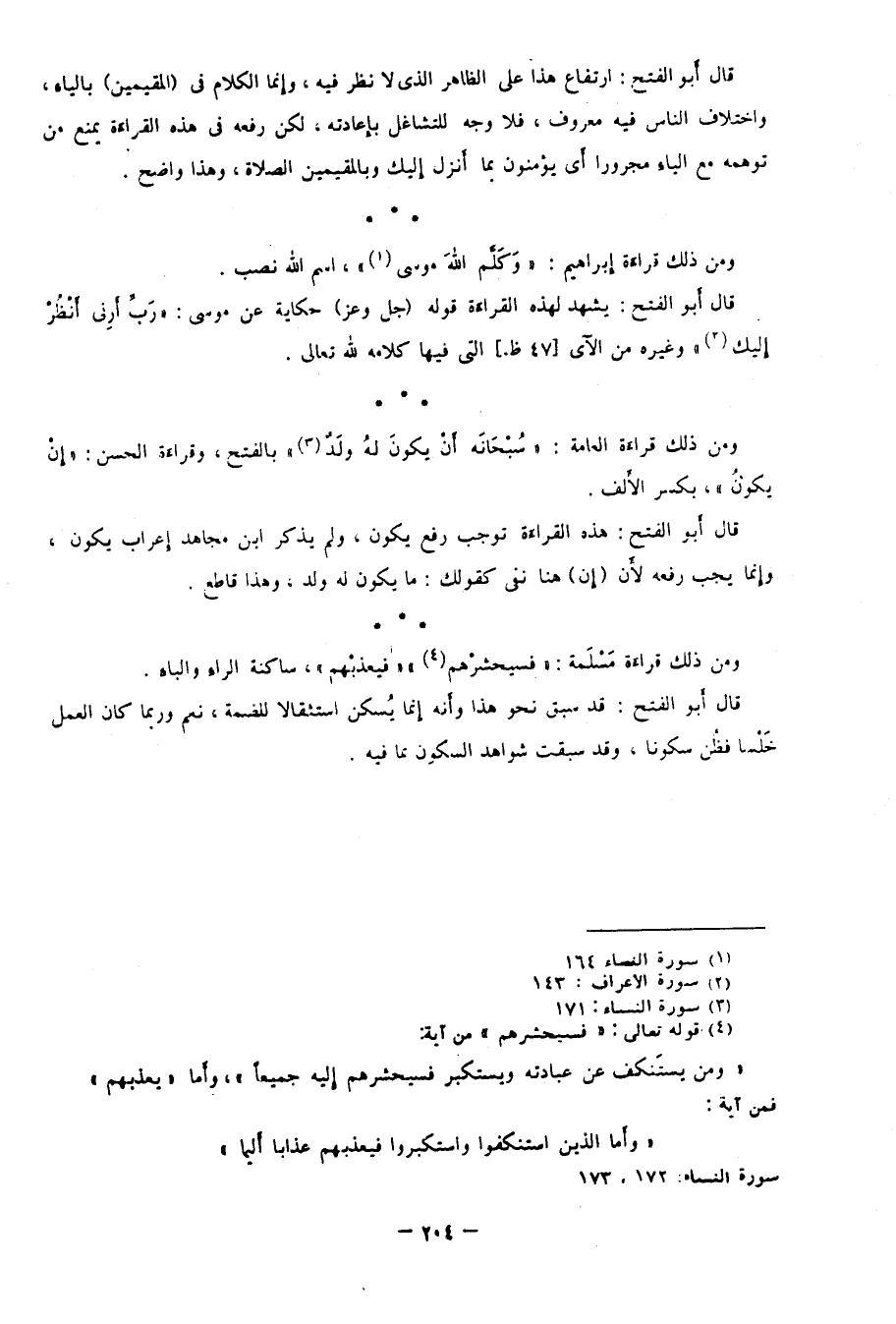 قال أبو الفتح: يشهد لهذه قوله -جل وعز- حكاية عن موسى: {رَبِّ أَرِنِي أَنْظُرْ إِلَيْكَ} 2، وغير من الآي "47ظ" التي فيه كلامه لله تعالى.