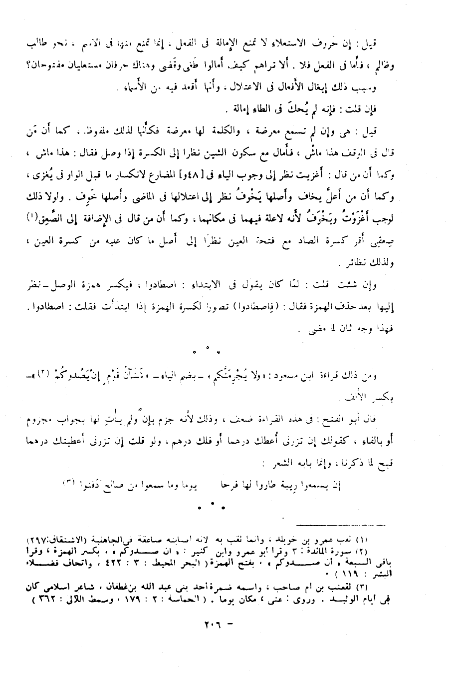قيل: إن حروف الاستعلاء لا تمنع الإمالة في الفعل؛ إنما تمنع منها في الاسم، نحو: طالب وظالم، فأما في الفعل فلا، ألا تراهم كيف أمالوا طغى وقضى وهناك حرفان مستعليان مفتوحان؟