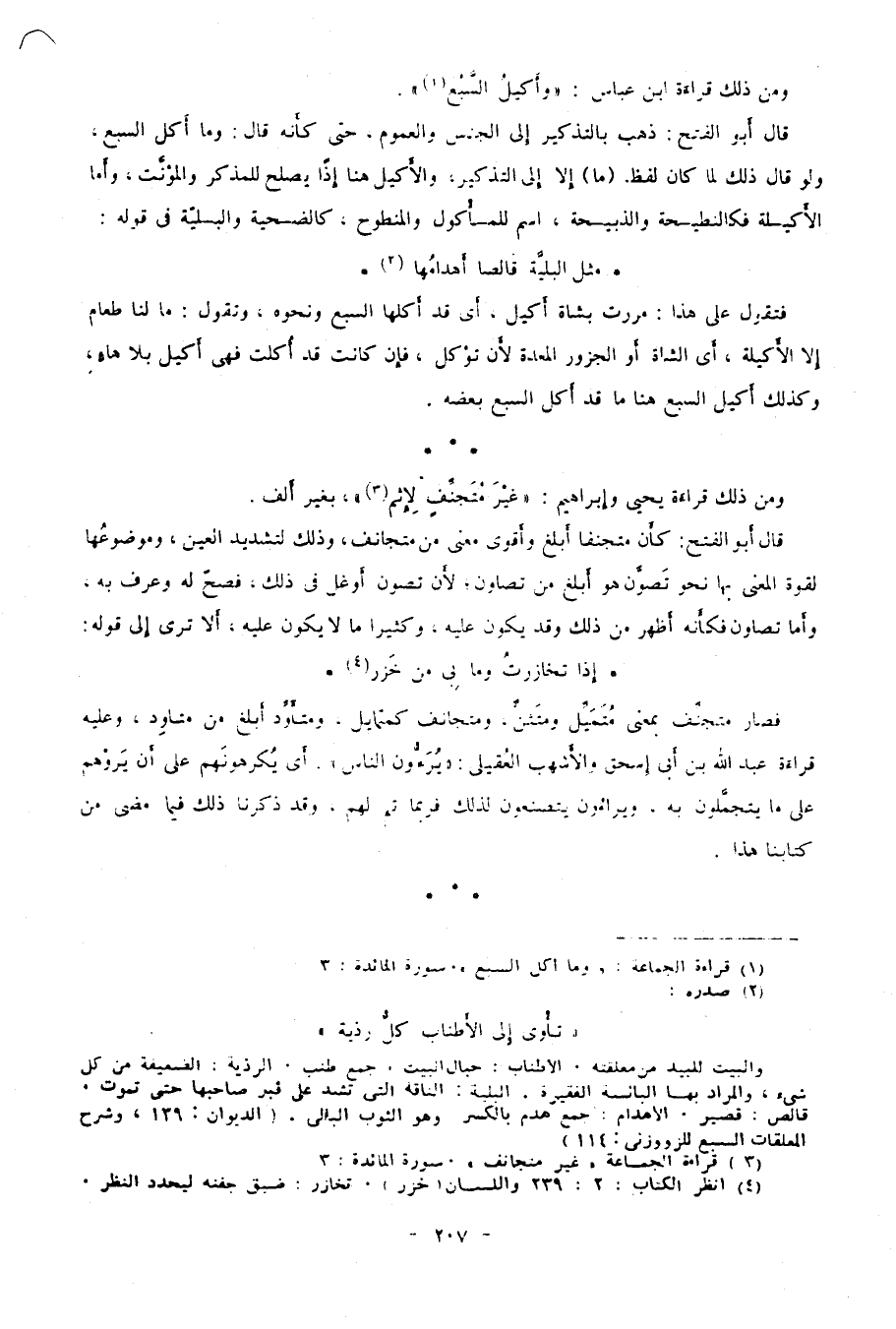 ومن ذلك قراءة ابن عباس: "وأَكيلُ السَّبُع"1.