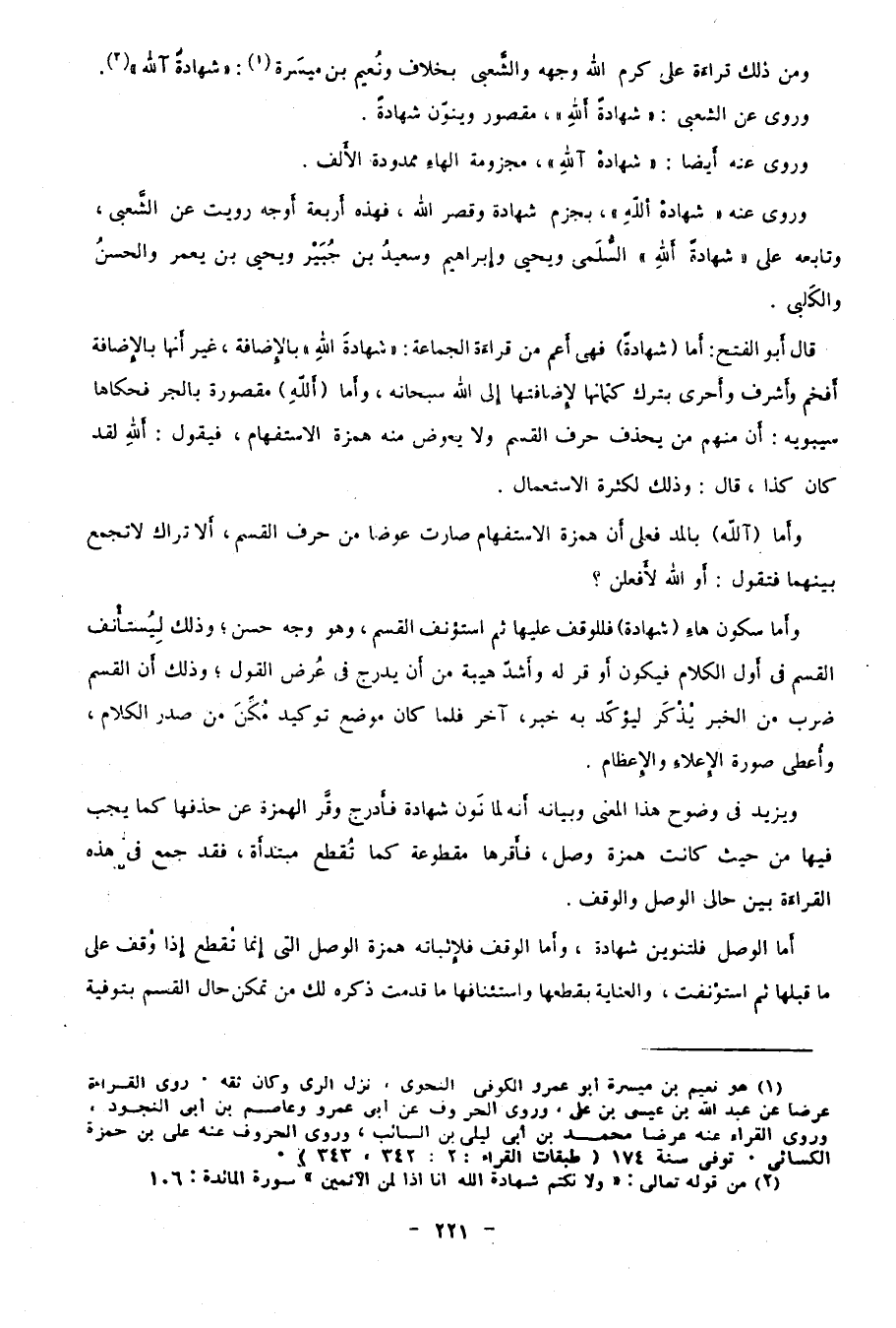 ورُوي عن الشعبي: "شهادةً أًللهِ" مقصور وينون شهادة.