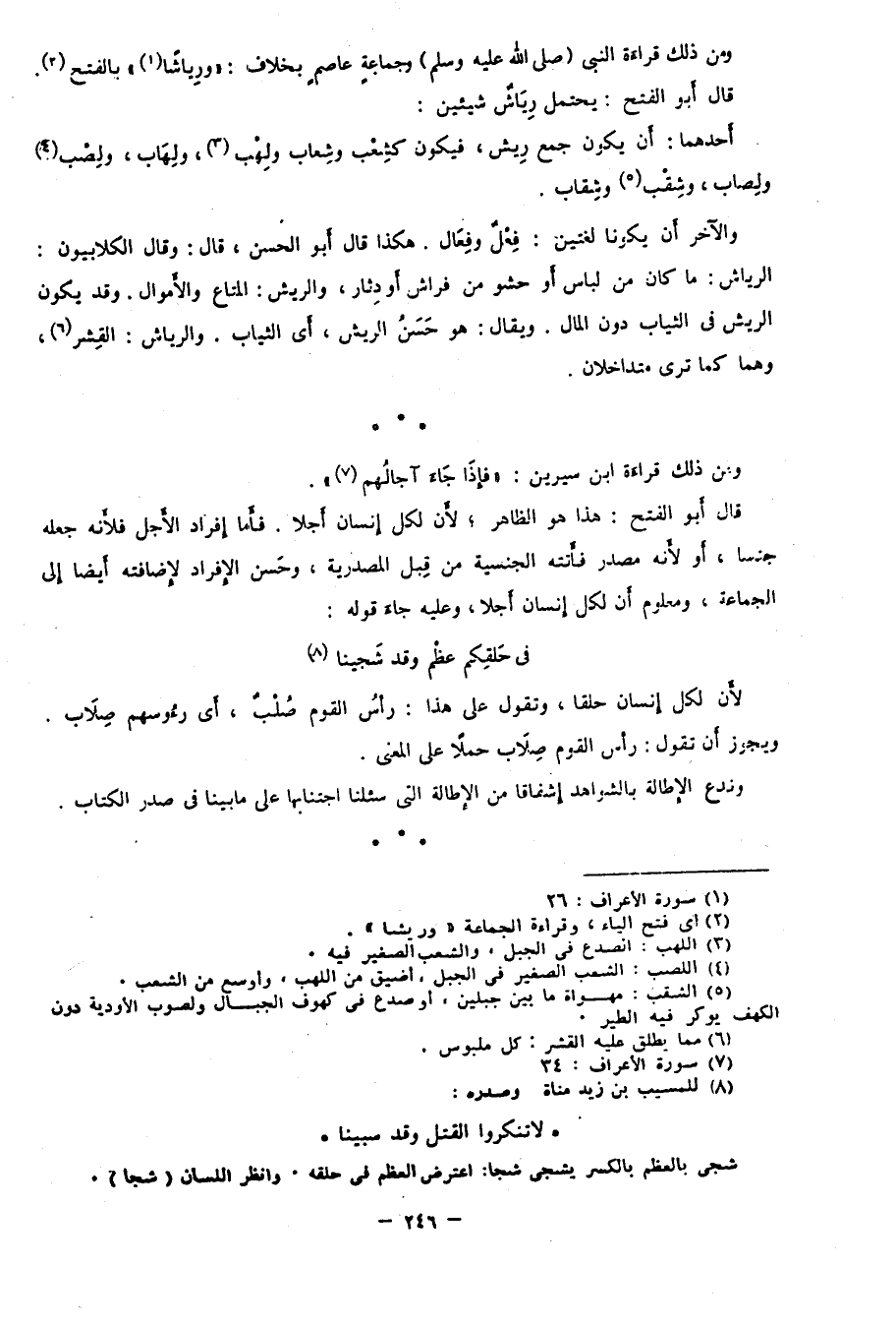 ومن ذلك قراءة النبي -صلى الله عليه وسلم- وجماعة وعاصم بخلاف: "ورِياشًا"1 بالفتح2.