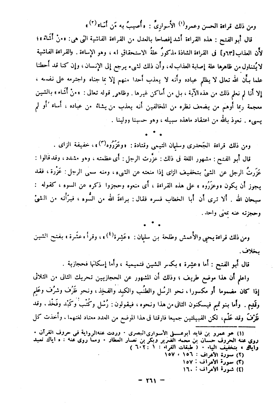 ومن ذلك قراءة الجحدري وسليمان التيمي وقتادة: "وعَزَرُوه"3 خفيفة الزاي.