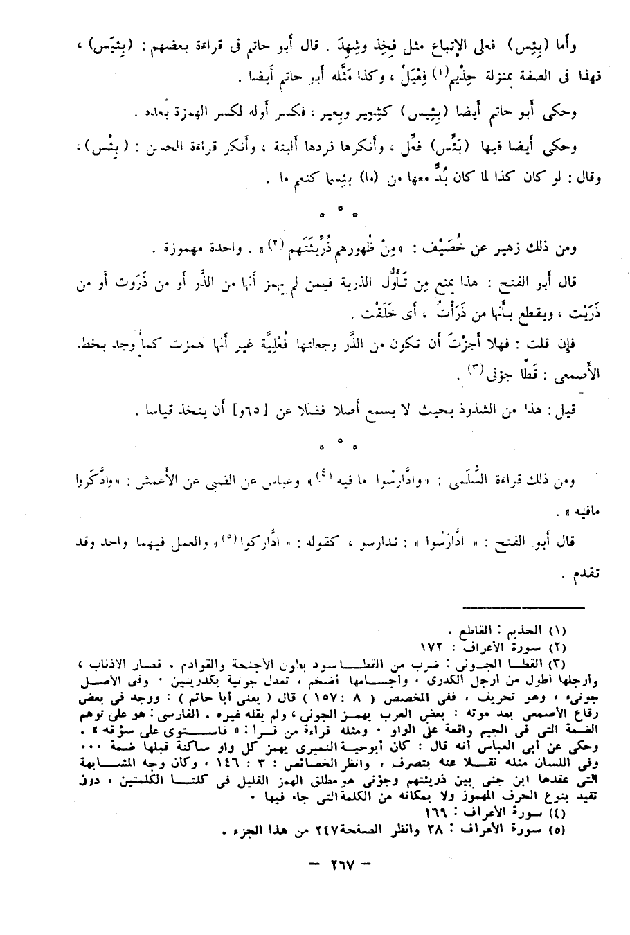 ومن ذلك قراءة زهير عن خُصَيف: "مِنْ ظُهورهم ذُرِّيئَتَهم"2 واحدة مهموزة.