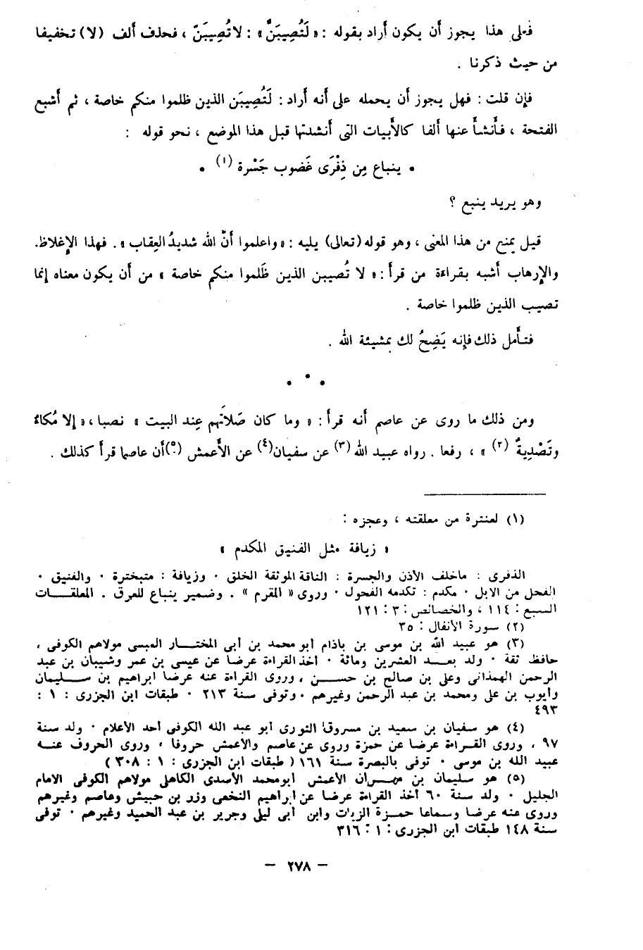4 هو سفيان بن سعيد بن مسروق الثوري أبو عبد الله الكوفي أحد الأعلام. ولد سنة 97، وروى القراءة عرضًا عن حمزة، وروى عن عاصم والأعمش حروفًا، وروى الحروف عنه عبيد الله بن موسى. توفي بالبصرة سنة 161. طبقات ابن الجزري: 1/ 308.