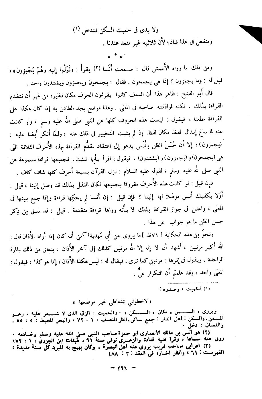 فإن قيل: لو كانت هذه الأحرف مقروءًا بجميعها لكان النقل بذلك قد وصل إلينا، وقيل: أَوَلَا يكفيك أنس موصِّلًا لها إلينا؟ فإن قيل: ان أنسًا لم يحكها قراءة؛ وإنما جمع بينها في المعنى، واعتل في جواز القراءة بذلك لا بأنه رواها قراءة متقدمة. قيل: قد سبق من ذكر حسن الظن ما هو جواب عن هذا.