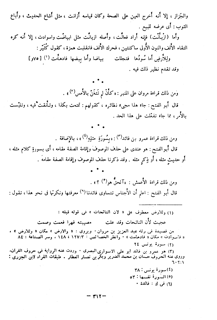 ومن ذلك قراءة مروان على المنبر: "كَأَنْ لَمْ تَتَغَنَّ بِالْأَمْس"2.