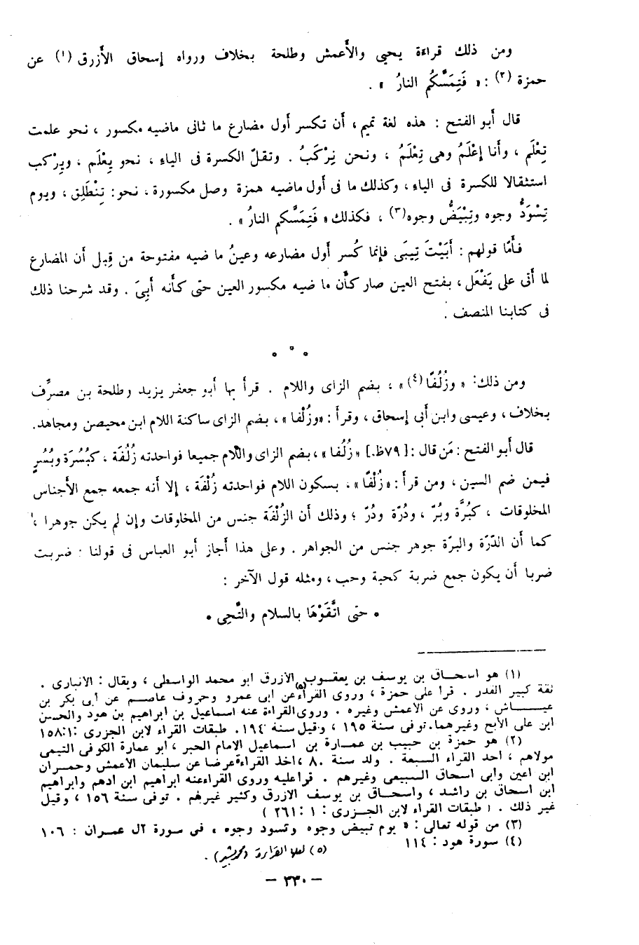 2 هو حمزة بن حبيب بن عمارة بن إسماعيل الإمام الحبر، أبو عمارة الكوفي التيمي مولاهم، أحد القراء السبعة. ولد سنة 80، أخذ القراءة عرضًا عن سليمان الأعمش وحمران بن أعين وأبي إسحاق السبيعي وغيرهم، قرأ عليه ورى القراءة عنه إبراهيم بن ادهم وإبراهيم بن إسحاق بن راشد، وإسحاق بن يوسف الأزرق وكثير غيرهم. توفي سنة 156، وقيل غير ذلك. طبقات القراء لابن الجزري: 1/ 261.