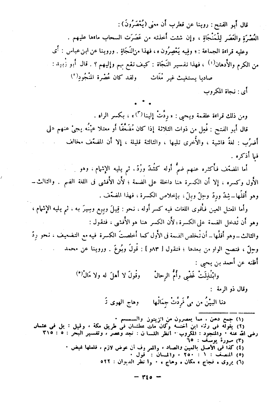 وعليه قراءة الجماعة: {وَفِيهِ يَعْصِرُونَ} ، فهذا من النجاة. وروينا عن ابن عباس: أي يَعْصِرون من الكرم والأدهان1، فهذا تفسير النجاة: كيف تقع بهم وإليهم؟ قال أبو زبيد:
