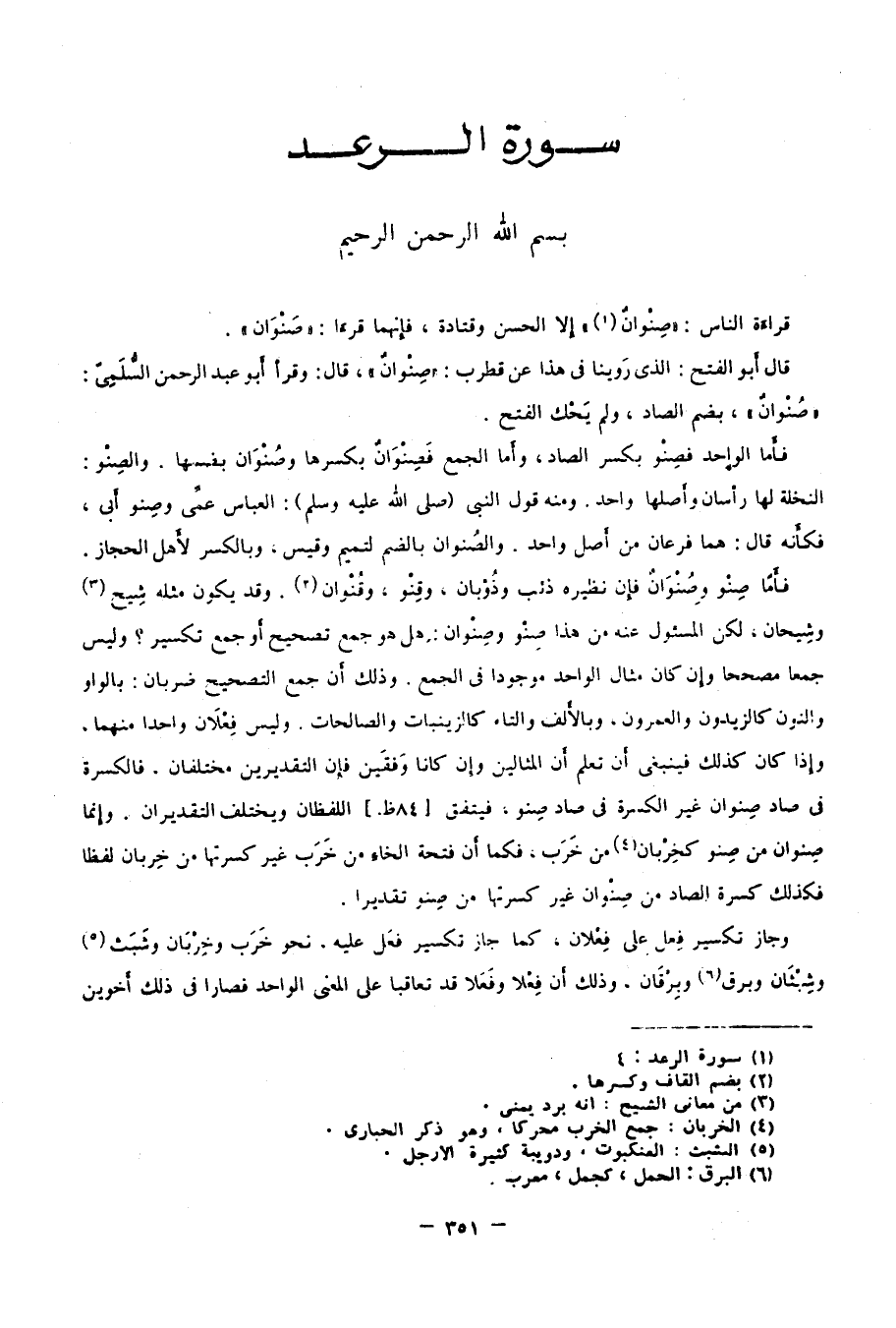 قراءة الناس: {صِنْوَانٌ} 1 إلا الحسن وقتادة، فإنهما قرآ: "صَنْوَان".
