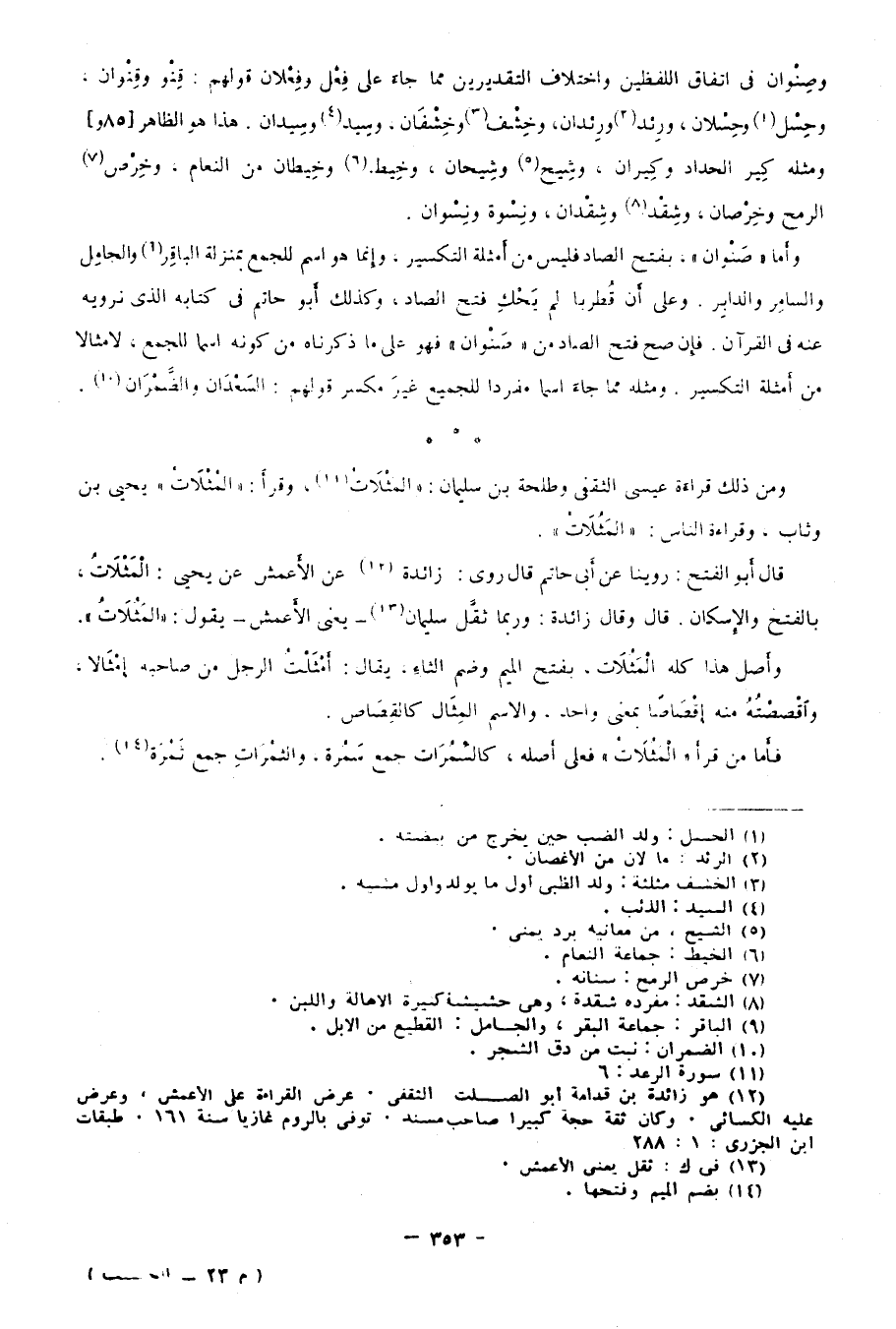 ومن ذلك قراءة عيسى الثقفي وطلحة بن سليمان: "الْمَثْلَاتُ"11، وقرأ: "الْمُثْلَاتُ" يحيى بن وثاب، وقراءة الناس: {الْمَثُلَاتُ} .