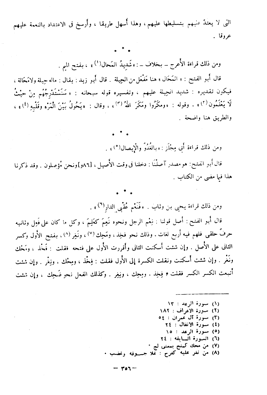 ومن ذلك قراءة الأعرج بخلاف: {شَدِيدُ الْمَحَالِ} 1 بفتح الميم.