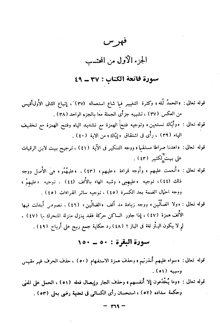فهرس: الجزء الأول من المحتسب