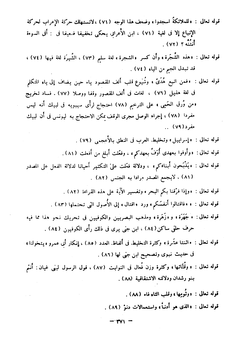 قوله تعالى: "فمن اتبع هُدَيّ" وشيوع قلب ألف المقصور ياء حين يضاف إلى ياء المتكلم في لغة هذيل 76، لغات في ألف المقصور وقفًا ووصلًا 77، فساد تخريج "من وُرق الْحَمِي" على الترخيم 78، احتجاج لرأي سيبويه في لبيك أنه ليس مفردًا 78، إجراء الوصل مجرى الوقف يمكن الاحتجاج به ليونس في أن لبيك مفرد 79.
