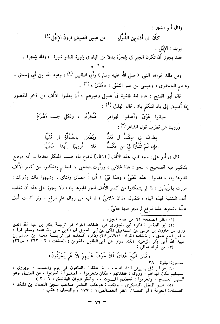 2 أبو الطفيل: ذكره ابن الجزري في طبقات القراء في ترجمة بكار بن عبد الله الذي روى عن هارون بن موسى عن إسماعيل المكي عن أبي الطفيل أن النبي -صلى الله عليه وسلم- قرأ: "فَمَنِ اتَّبَعَ هُدَيَّ". طبقات القراء: 1/ 77 س24، وذكره كذلك في ترجمة محمد بن مسلم بن عبيد الله أبي بكر الزهري، الذي روى عن أبي الطفيل وآخرين. الطبقات: 2/ 262، س22.