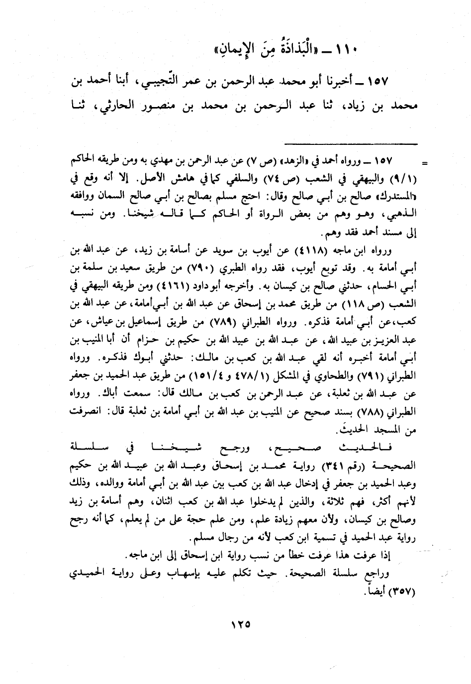 157 - أَخْبَرَنَا أَبُو مُحَمَّدٍ عَبْدُ الرَّحْمَنِ بْنُ عُمَرَ التُّجِيبِيُّ، أبنا أَحْمَدُ بْنُ مُحَمَّدِ بْنِ زِيَادٍ، ثنا عَبْدُ الرَّحْمَنِ بْنُ مُحَمَّدِ بْنِ مَنْصُورٍ الْحَارِثِيُّ، ثنا عَبْدُ الرَّحْمَنِ بْنُ مَهْدِيٍّ، ثنا زُهَيْرُ بْنُ مُحَمَّدٍ، عَنْ صَالِحِ بْنِ كَيْسَانَ، عَنْ عَبْدِ اللَّهِ بْنِ أَبِي أُمَامَةَ، عَنْ أَبِيهِ، قَالَ: قَالَ رَسُولُ اللَّهِ صَلَّى اللهُ عَلَيْهِ وَسَلَّمَ: «§الْبَذَاذَةُ مِنَ الْإِيمَانِ، الْبَذَاذَةُ مِنَ الْإِيمَانِ، الْبَذَاذَةُ مِنَ الْإِيمَانِ»