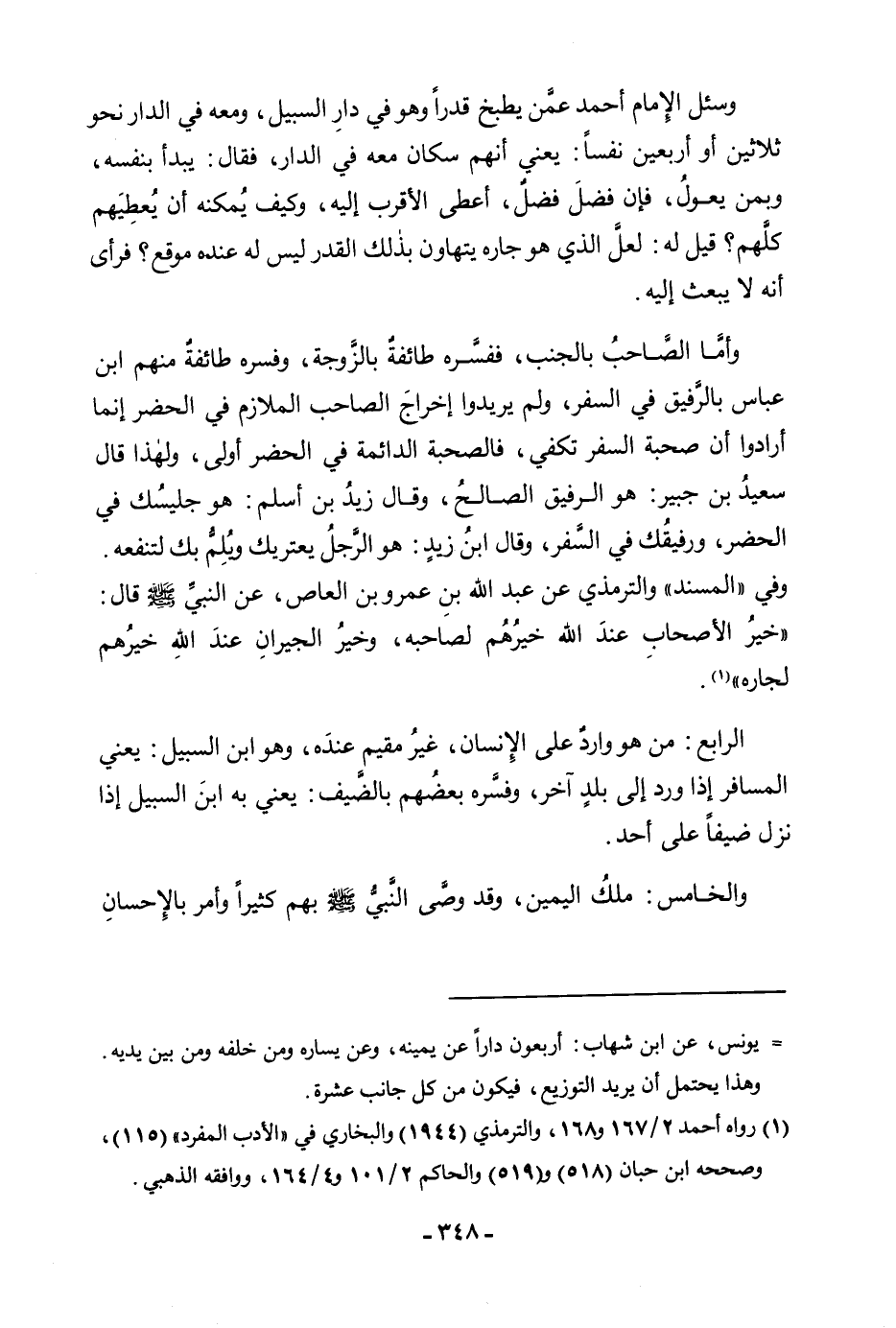 الرَّابِعُ: مَنْ هُوَ وَارِدٌ عَلَى الْإِنْسَانِ، غَيْرَ مُقِيمٍ عِنْدَهُ، وَهُوَ ابْنُ السَّبِيلِ، يَعْنِي الْمُسَافِرَ إِذَا وَرَدَ إِلَى بَلَدٍ آخَرَ، وَفَسَّرَهُ بَعْضُهُمْ بِالضَّيْفِ: يَعْنِي بِهِ ابْنَ السَّبِيلِ إِذَا نَزَلَ ضَيْفًا عَلَى أَحَدٍ.