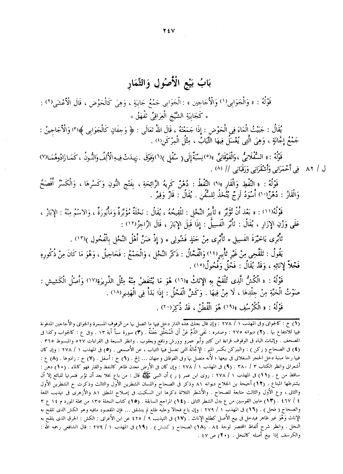 (¬19) فى المهذب 1/ 279: قال الشافعى رحمه الله: والكرسف إذا بيع أصله كالنخل.