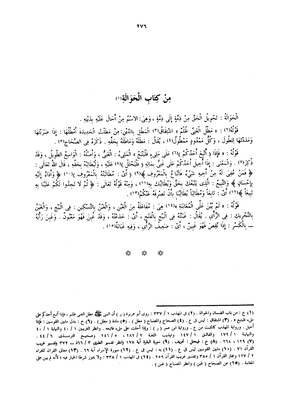 (¬6) خ: بدل ما بين القوسين: فإذا أجيل. ورواية المهذب كالمثبت من ع. ورواية ابن عمر (ر): وإذا أحلت على ملىء فاتبعه. وانظر الغريبين 1/ 40 والنهاية 1/ 40 والنهاية 1/ 179 والفائق 1/ 147 وتهذيب اللغة 2/ 282، 5/ 246 وصحيح الترمذى 6/ 44.