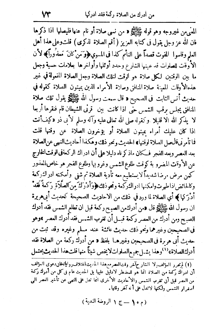 1 لم يحرر المؤلف ولا الشارح وقت العصر مع هذا الحديث باختلاف رواياته فإن دعوى المؤلف أن إدراك ركعة من الصلاة إنما هو للمضطر لا دليل عليها بل الحديث عام في كل من أدرك ركعة من العصر قبل أن تغرب الشمس والأحاديث الأخرى إنما تدل على النهي عن تأخير العصر إلى اصفرار الشمس ولكنها لا تدل على أنه آخر وقتها.