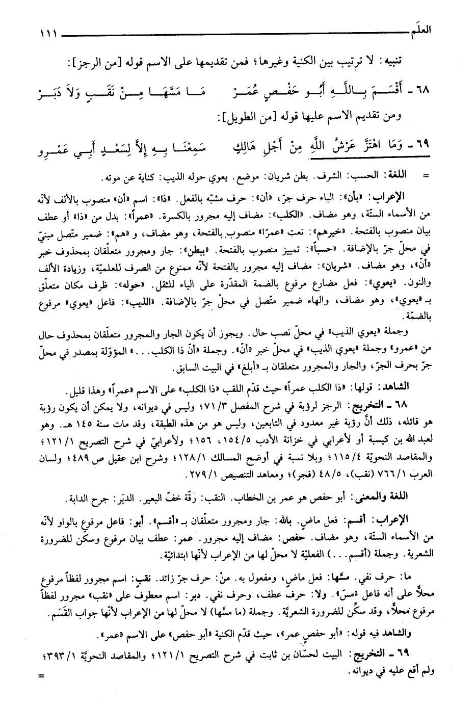 والشاهد فيه قوله: "أبو حفص عمر"، حيث قدم الكنية "أبو حفص" على الاسم "عمر".