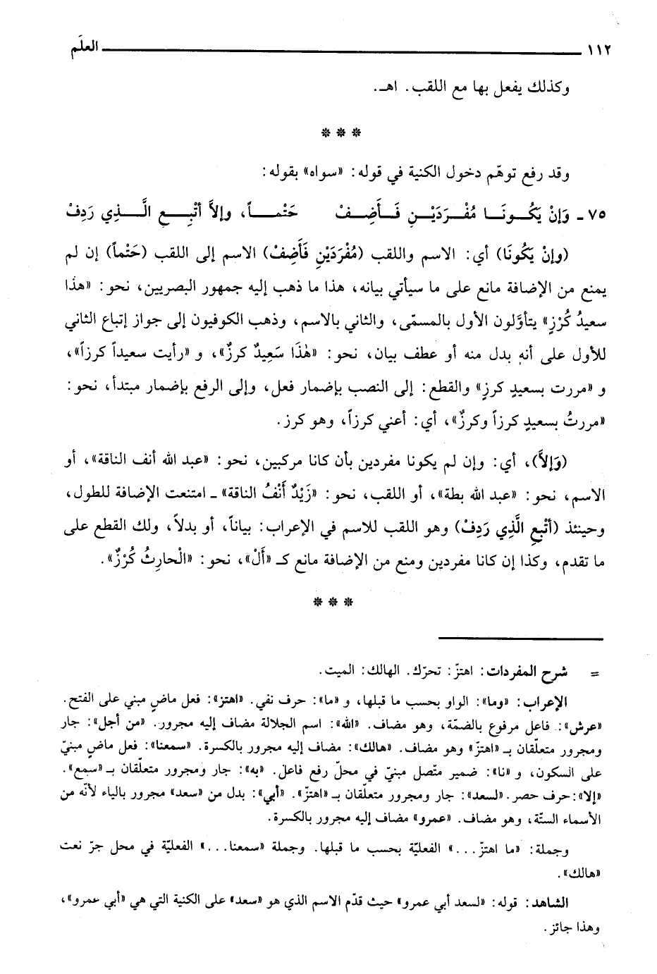 الشاهد: قوله: "لسعد أبي عمرو" حيث قدم الاسم الذي هو "سعد" على الكنية التي هي "أبي عمرو"، وهذا جائز.